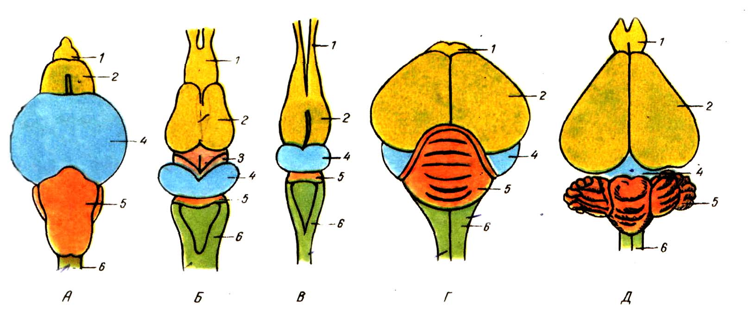 ![Схема развития отделов головного мозга позвоночных животных]()