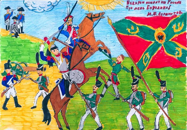 ![Бородинская битва 1812 детский рисунок]()