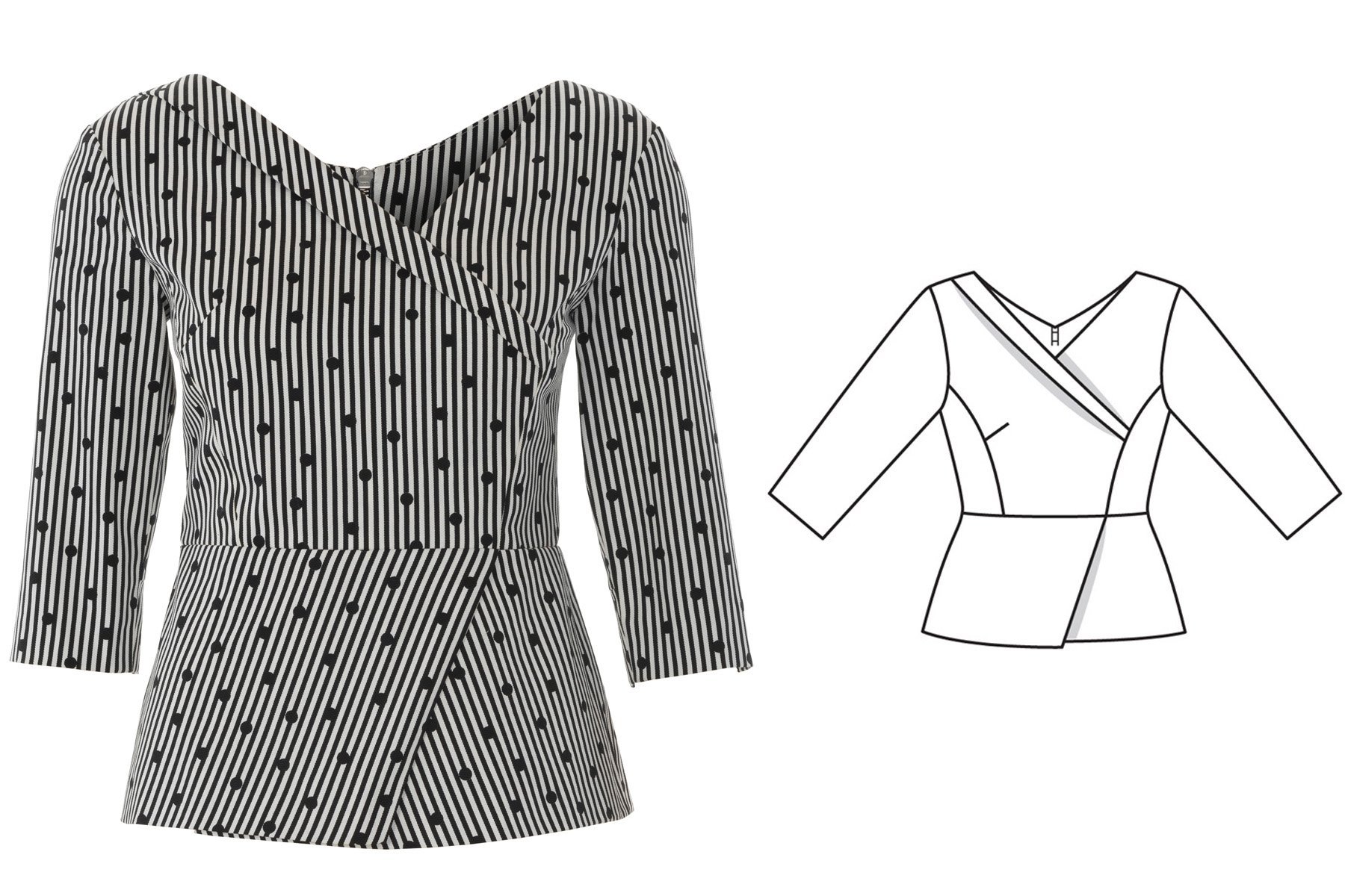 ![Выкройка блузы с баской]()