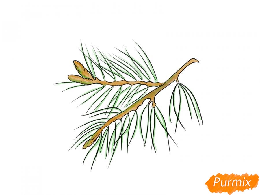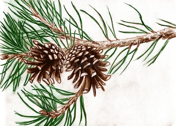 Сосновая ветка на рисунке - это натуральное и живописное изображение одного из символов природы. Разнообразные оттенки зелени и коричневого создают ощущение реальности и привлекают взгляд к деталям каждой иглы и шишки. Ветка сосны, становясь объектом рисунка, передает спокойствие и гармонию, а также может служить украшением в интерьере или использоваться в дизайне различных проектов. Этот рисунок не только акцентирует внимание на красоте природы, но и является выразительным элементом, который может добавить шарма и естественности в среду, где он будет представлен.