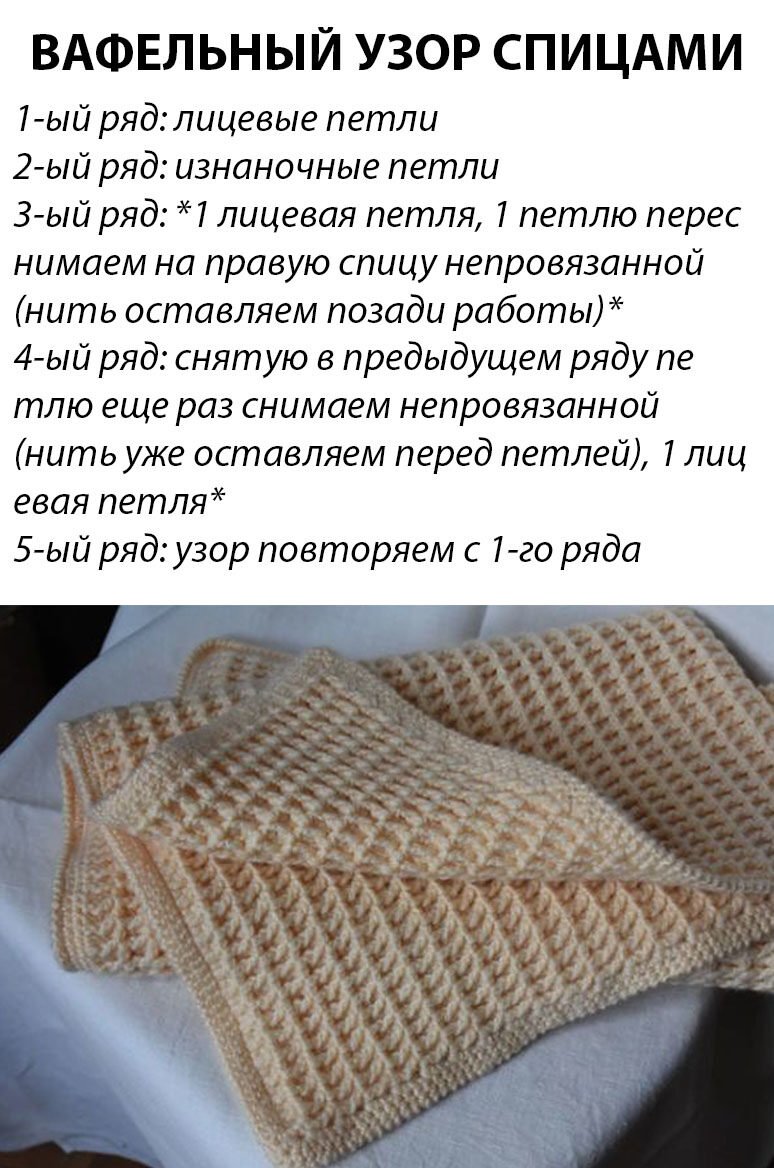 Вязание спицами вафельный узор схема описание