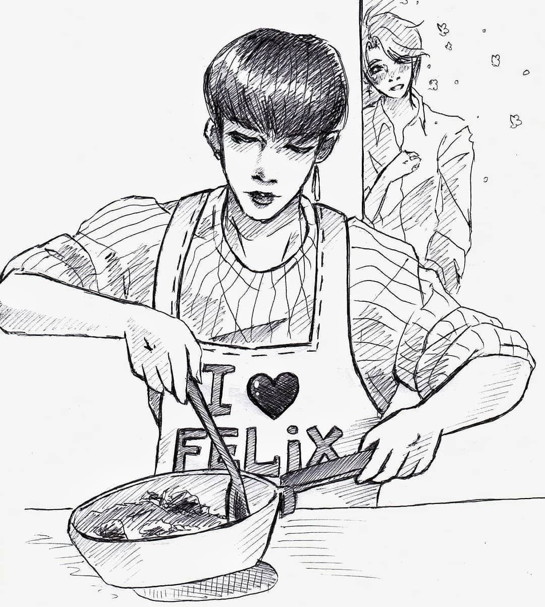 ![Феликс Stray Kids рисунок]()