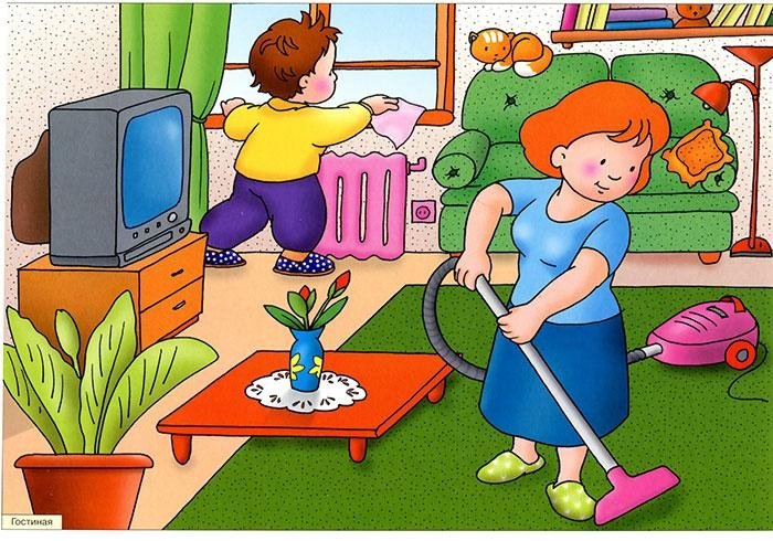 ![Уборка раскраска для детей]()