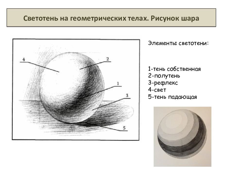 ![Свет тень полутень рефлекс блик в рисунке карандашом]()