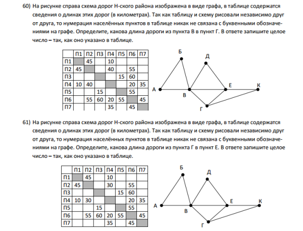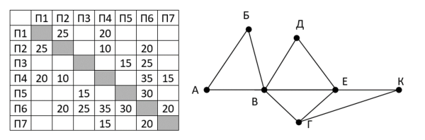 На рисунке справа схема дорог н-ского района изображена в виде графа