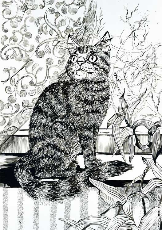 ![Кошка карандашом]()