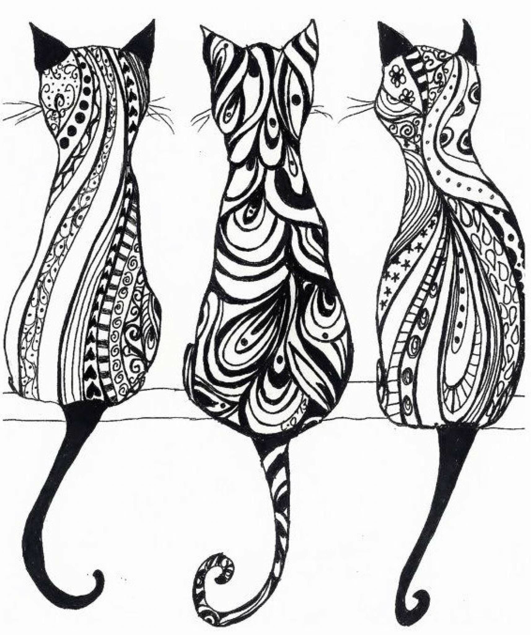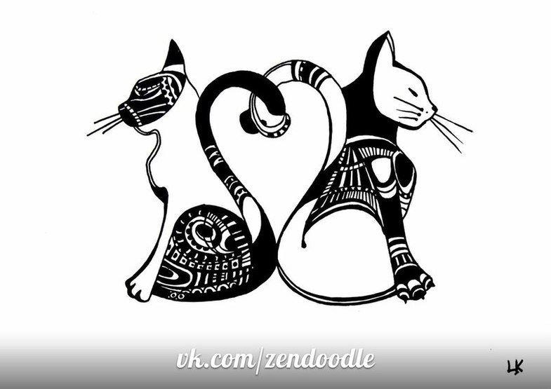 ![Зентангл узоры кошки]()