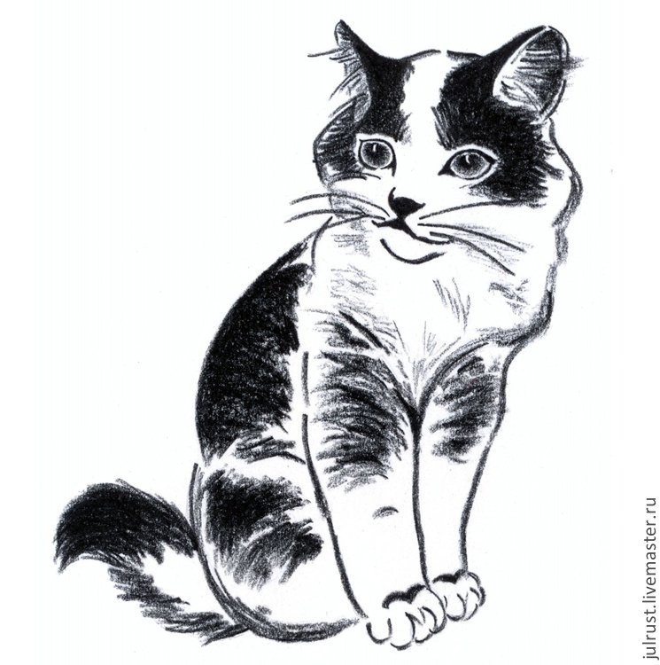 Котик черно белый рисунок