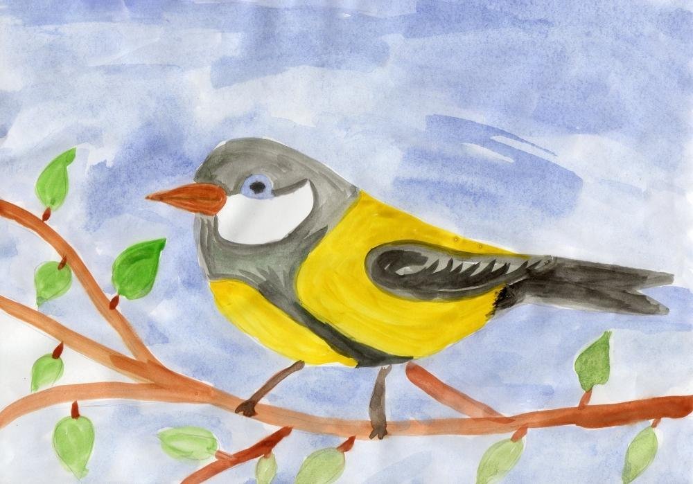 ![Синичка рисунок детский]()