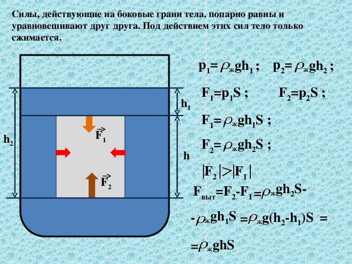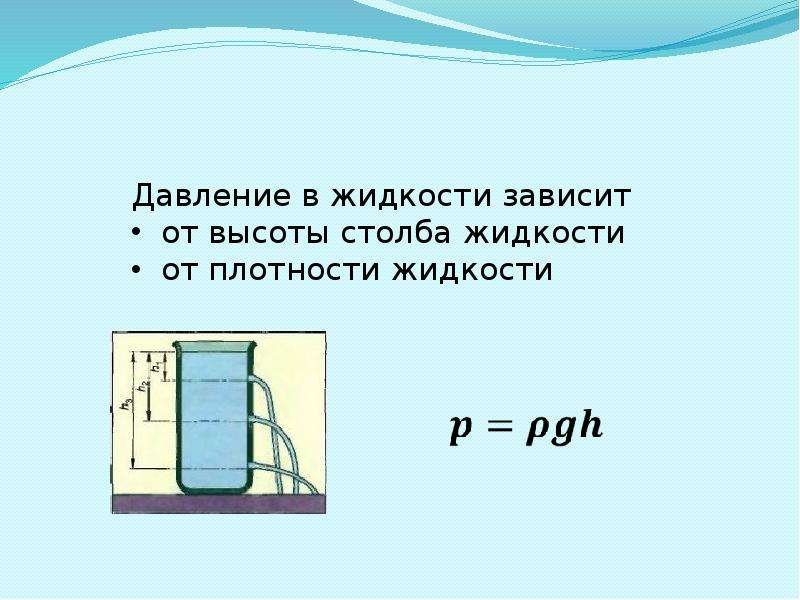 ![Формула давления жидкости на дно сосуда 7 класс]()