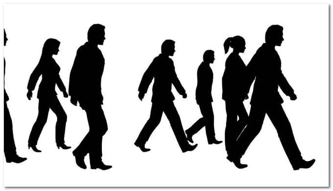 ![Силуэт идущей группы]()