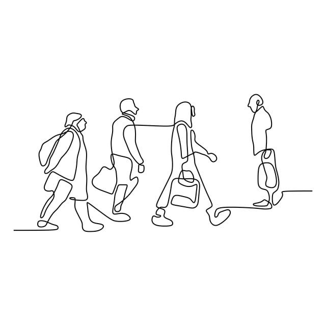 Идущие люди на рисунке воплощают движение и энергию. Их контуры и позы передают динамическую натуру человеческого движения. Линии, которыми они изображены, подчеркивают грацию и гармонию движений, создавая живой и динамичный образ. Разнообразные фигуры и позы идущих людей добавляют разнообразие и интересность в рисунок, придают ему эмоциональную глубину и ощущение движения. Весь рисунок наполнен атмосферой движения и активности, что делает его живым и захватывающим для зрителя.