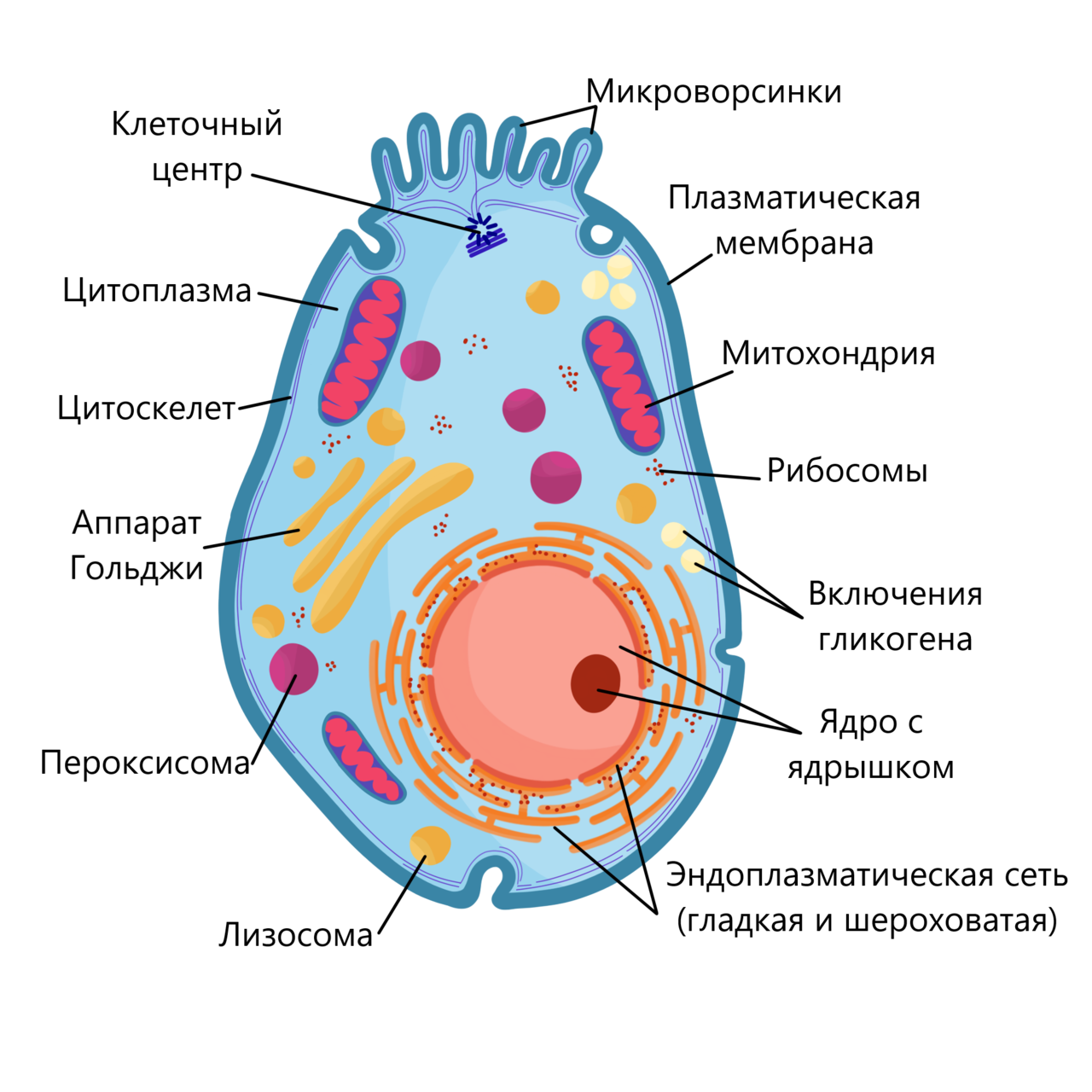 Животная клетка рисунок с подписями органоидов