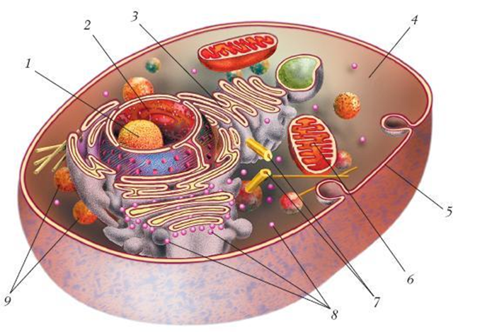 ![Рисунок животной клетки с обозначениями]()