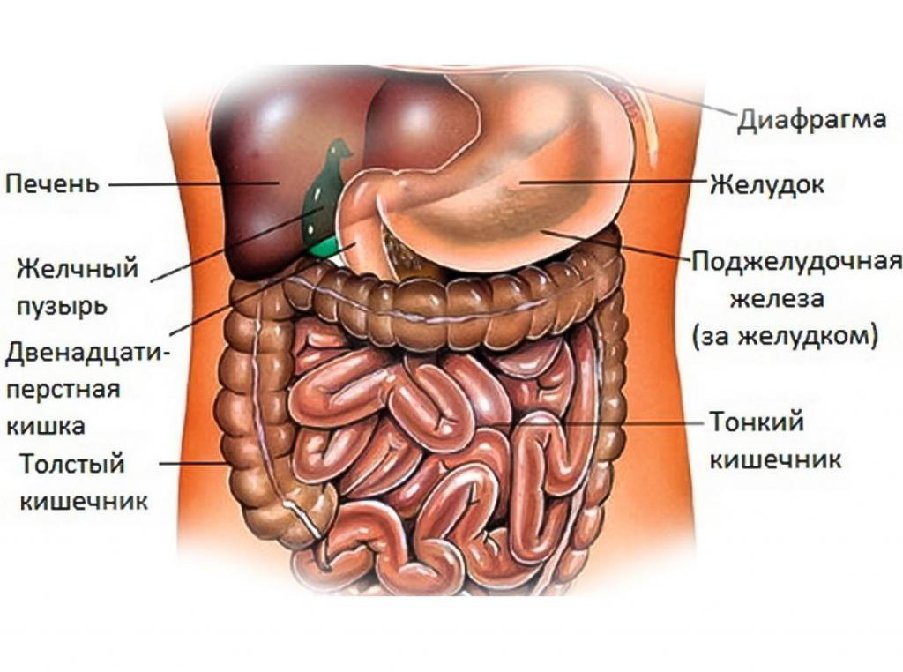 Схема расположения внутренних органов брюшной полости