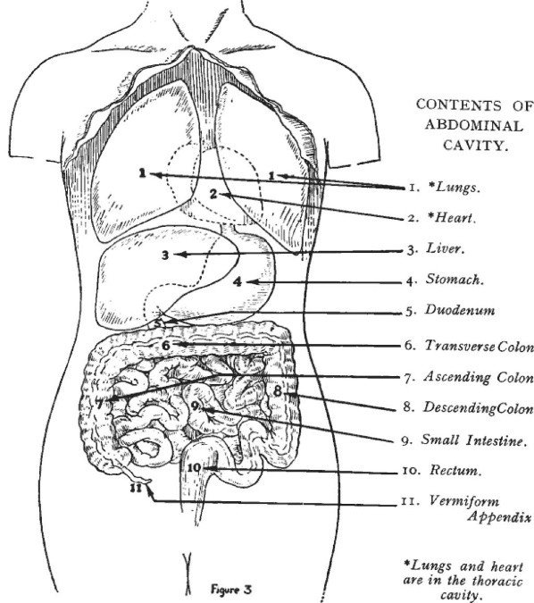 Схема расположения органов брюшной полости вид сбоку