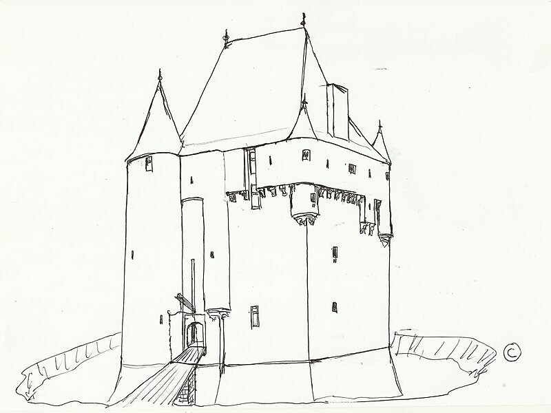Средневековый замок карандашом