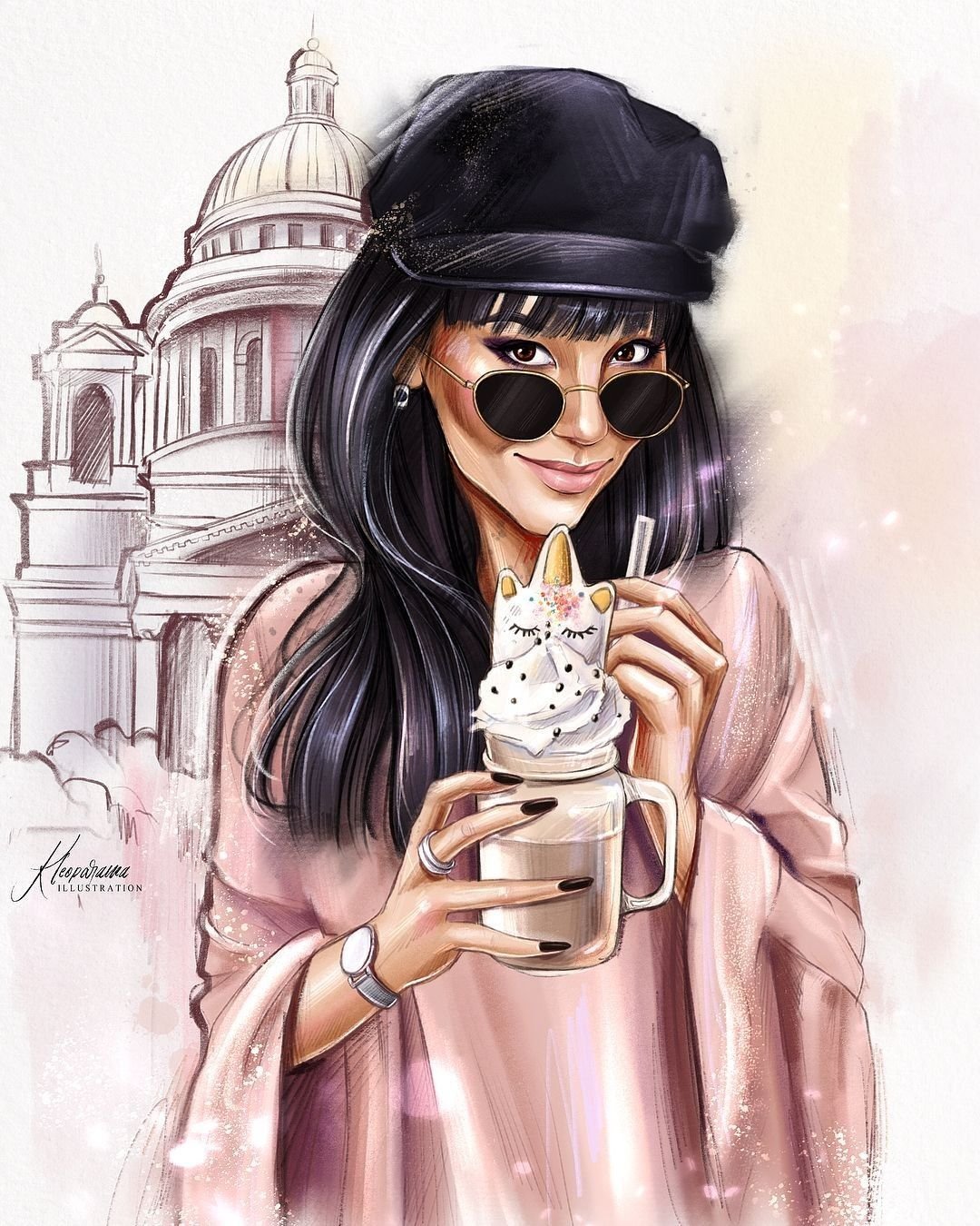 ![Нарисованная девушка в очках]()