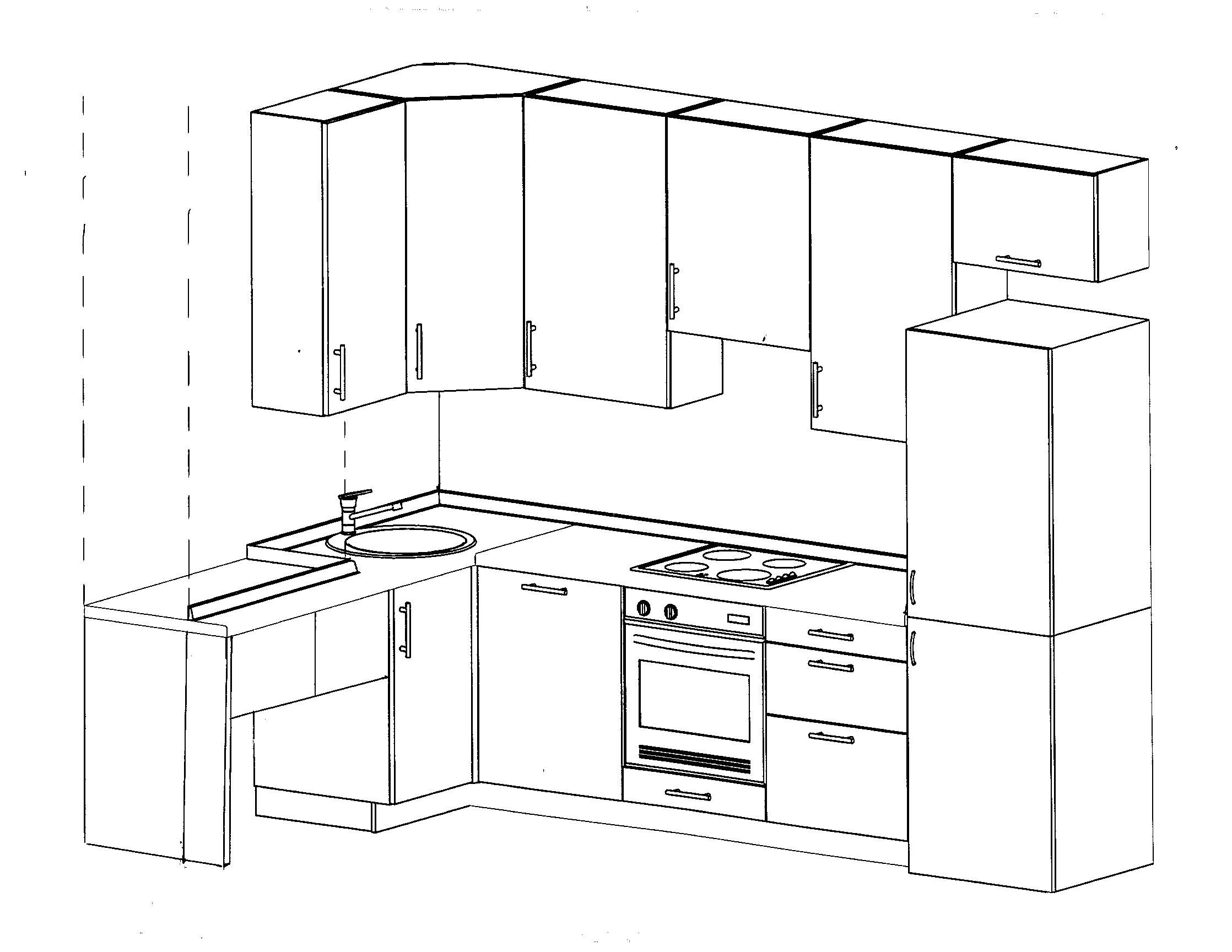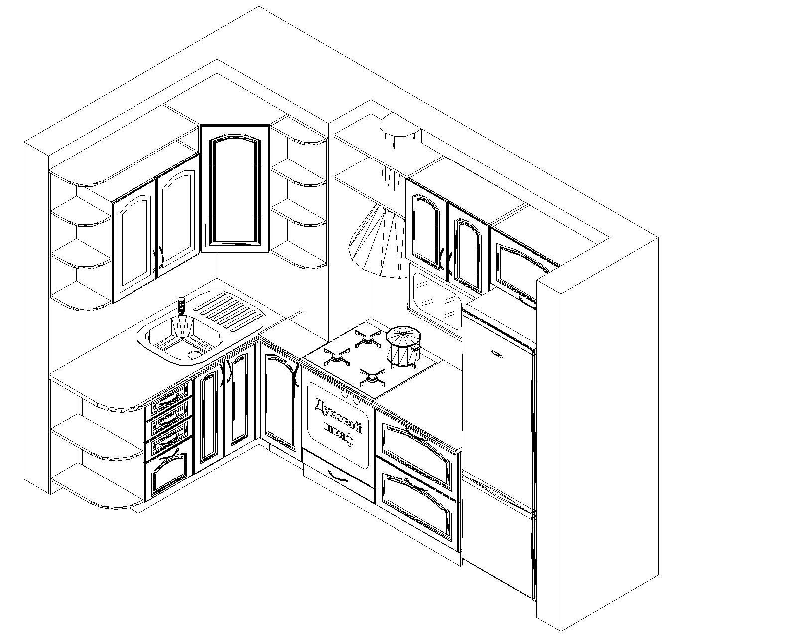 ![Чертеж угловой кухни 2метра на 2 метра]()
