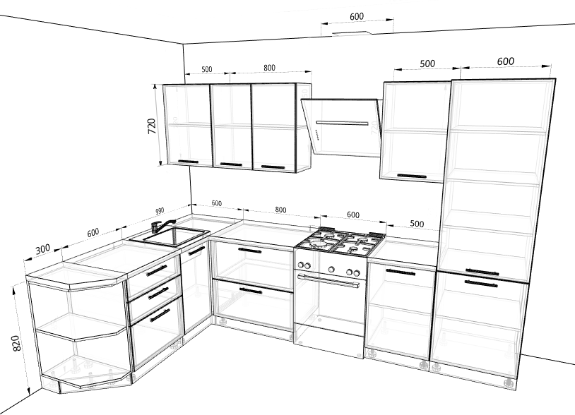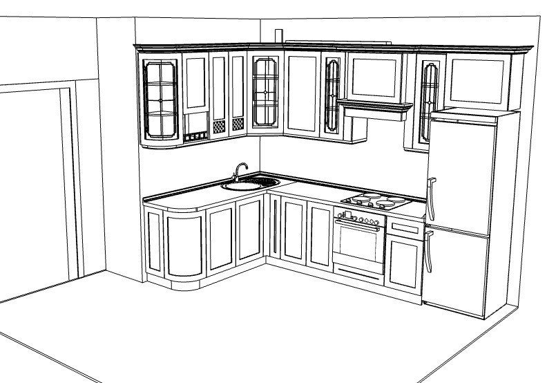 ![Проект кухонного гарнитура углового с размерами 3.28]()