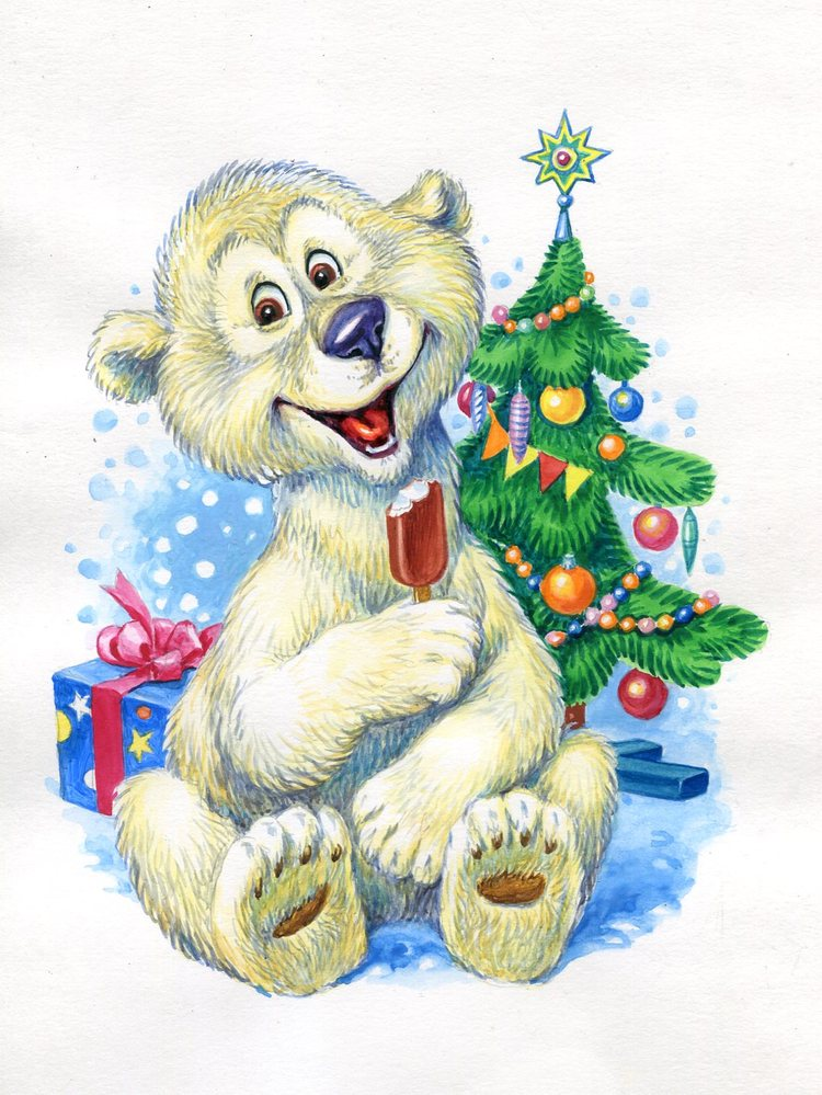 Медвежонок новогодний рисунок