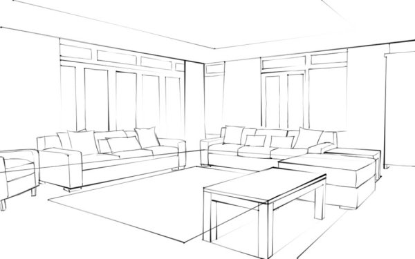 Зарисовка интерьера в угловой перспективе
