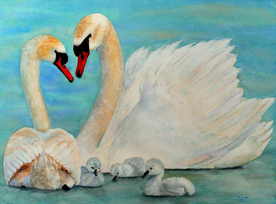 ![Картина семья лебедей]()