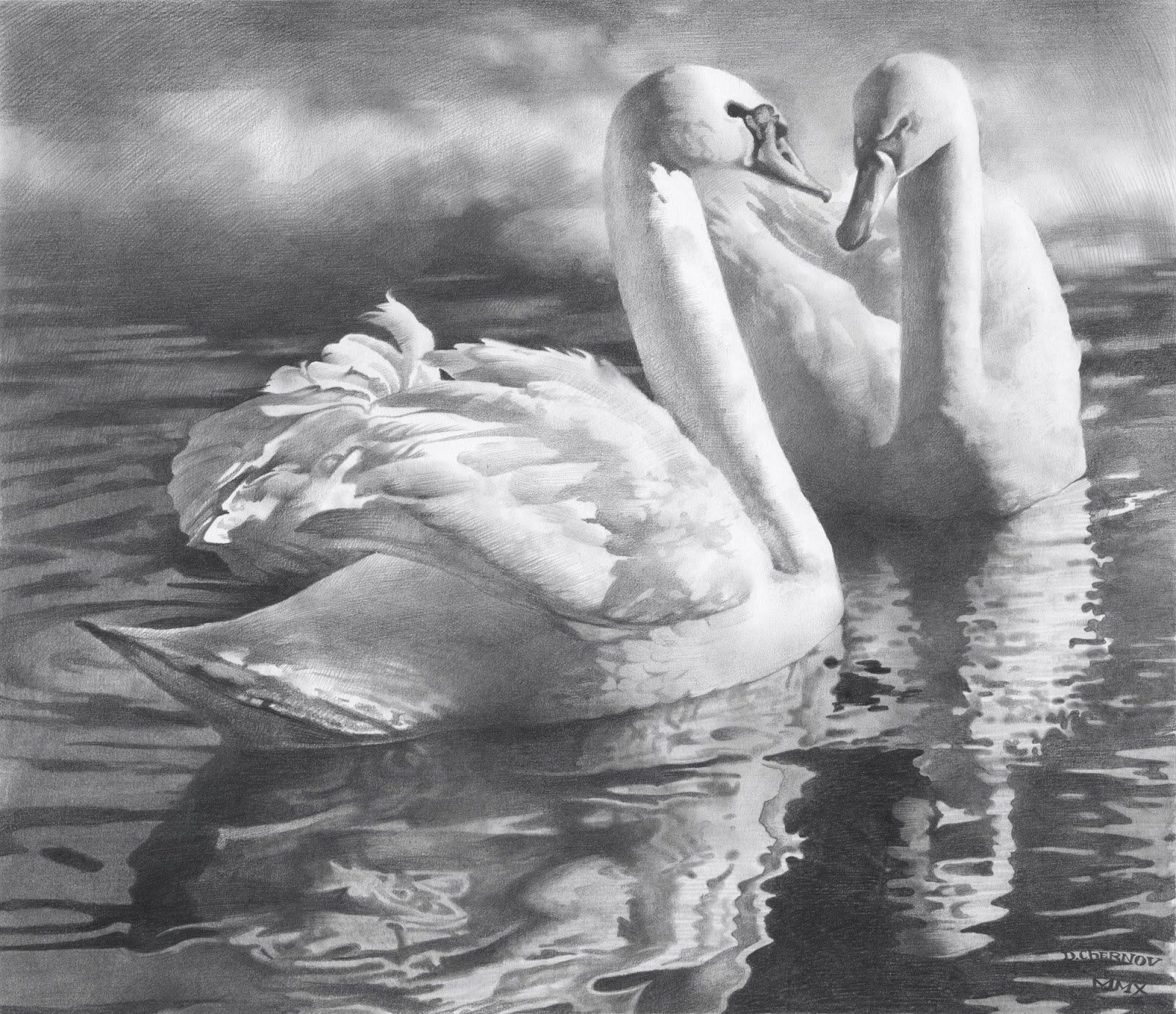 ![Лебеди Графика пастелью]()