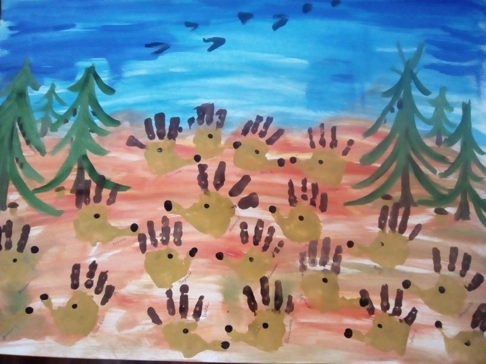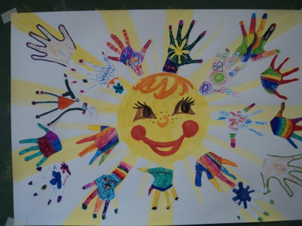 ![Коллективное рисование ладошками]()
