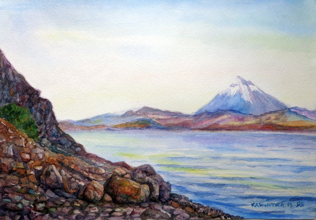 ![Вулкан Камчатки акварель]()