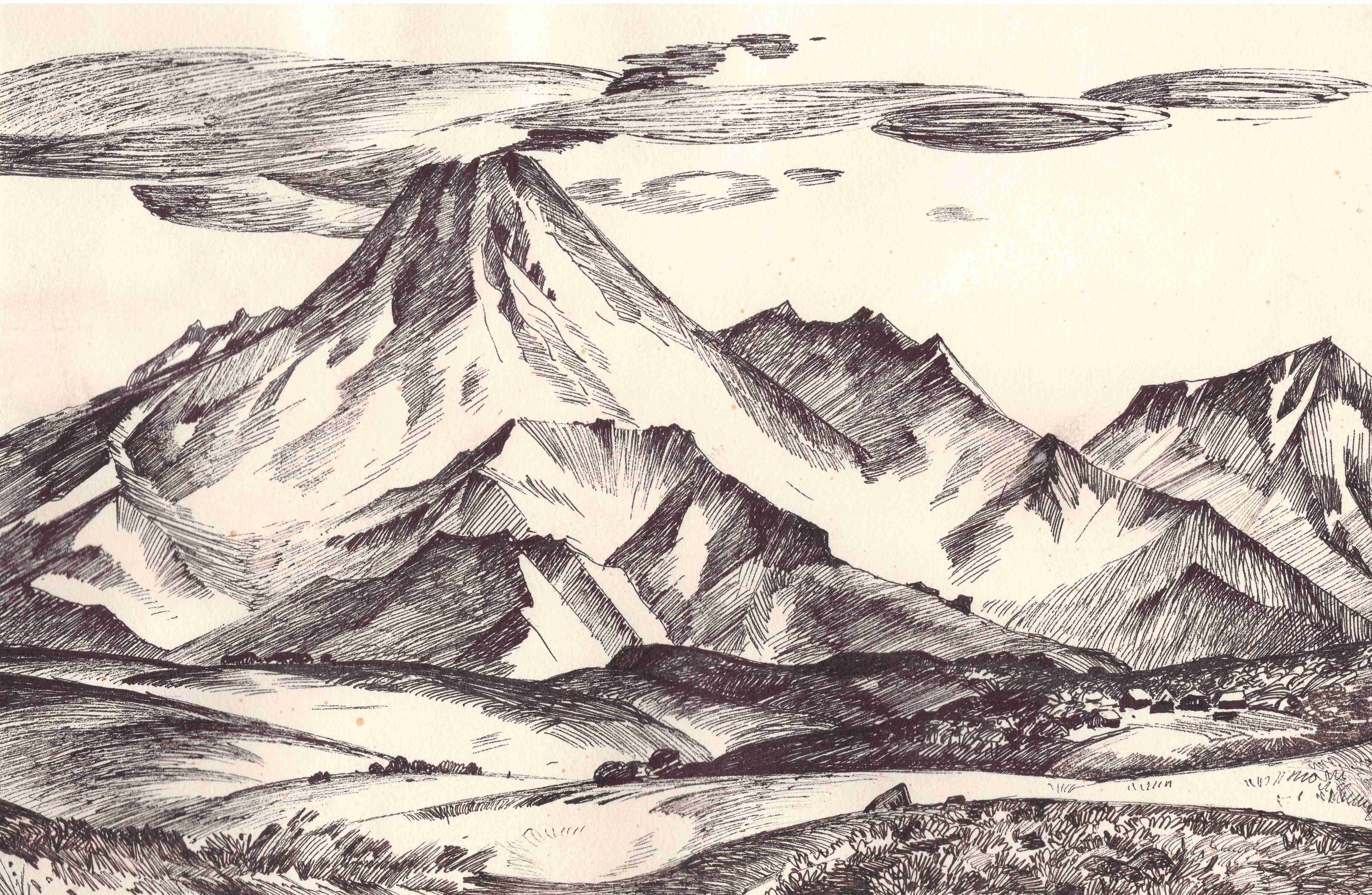 Рисуем Вилючинский вулкан Камчатки