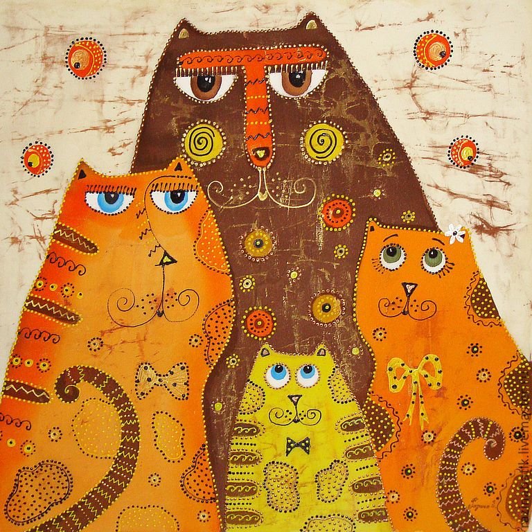 ![Примитивная живопись коты]()