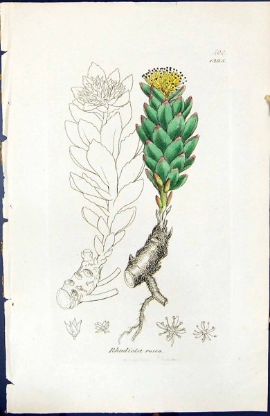 Родиола розовая Ботаническая иллюстрация