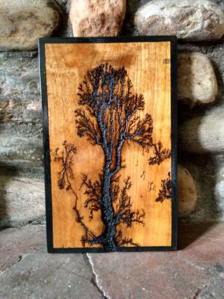 Молнии Лихтенберга на дереве сварочным аппаратом
