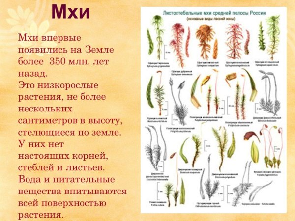 ![Виды листостебельных мхов с названиями]()