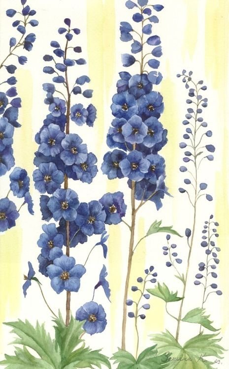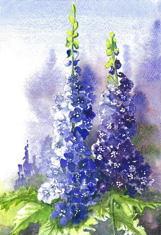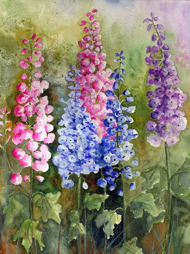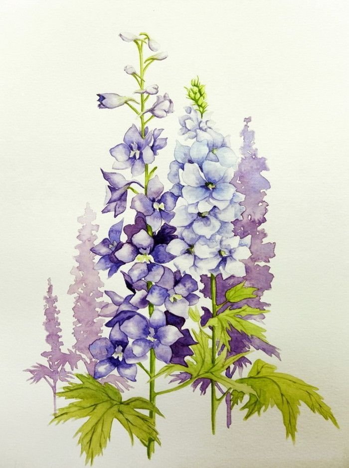 ![Дельфиниум акварель]()