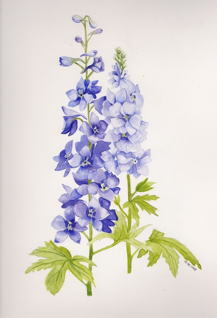 ![Дельфиниум рисунок акварель]()