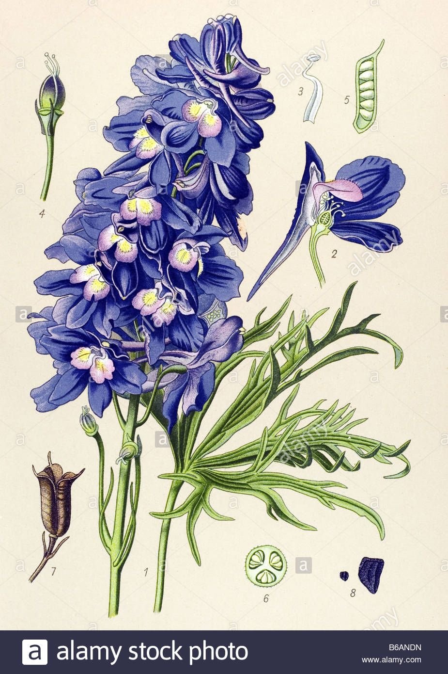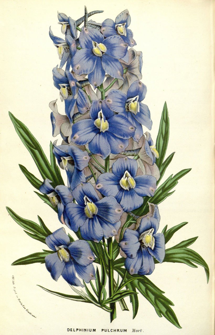 Дельфиниум Ботаническая иллюстрация