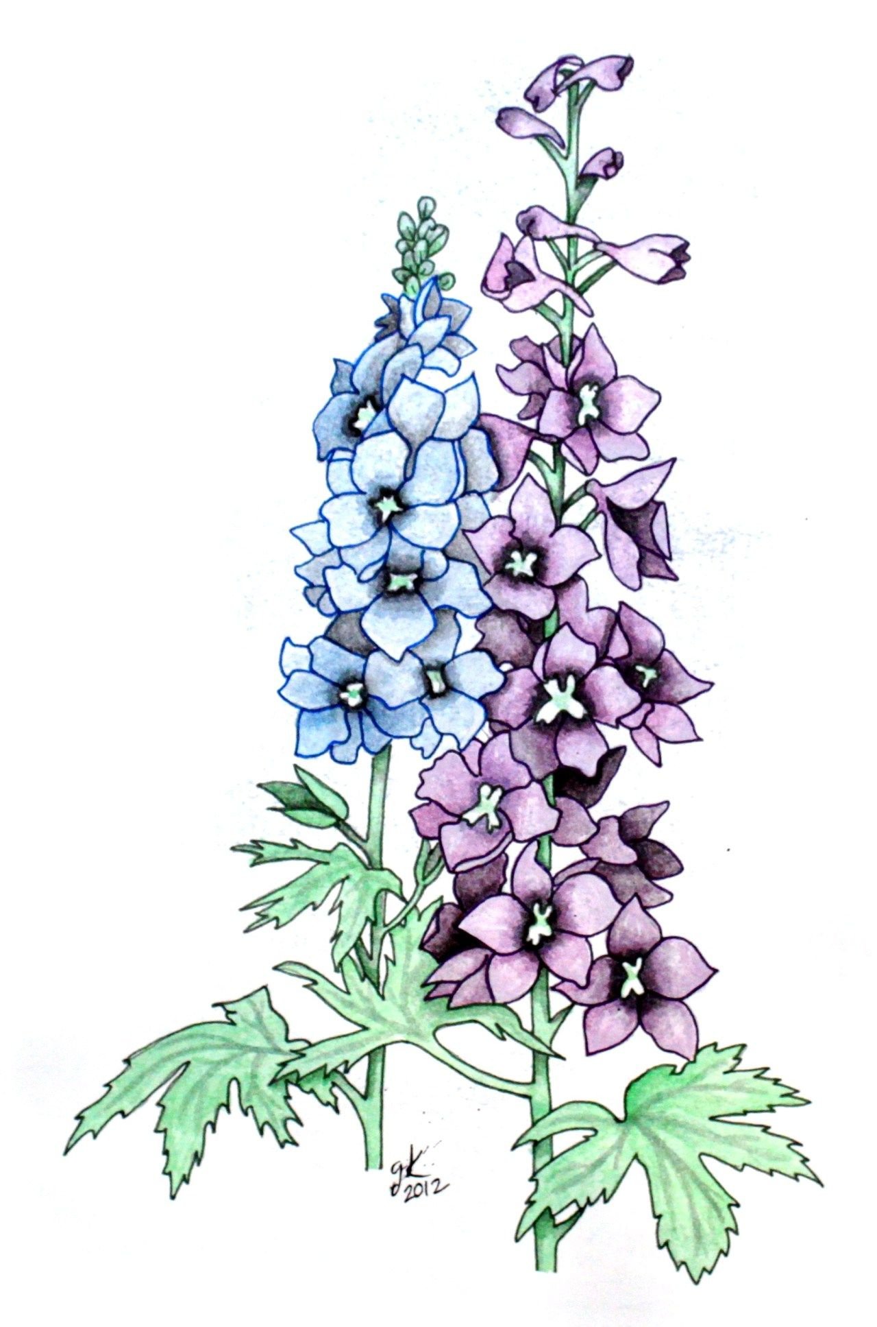 Дельфиниум рисунок акварель