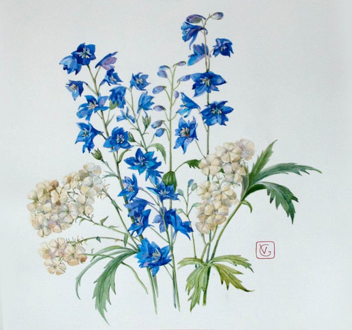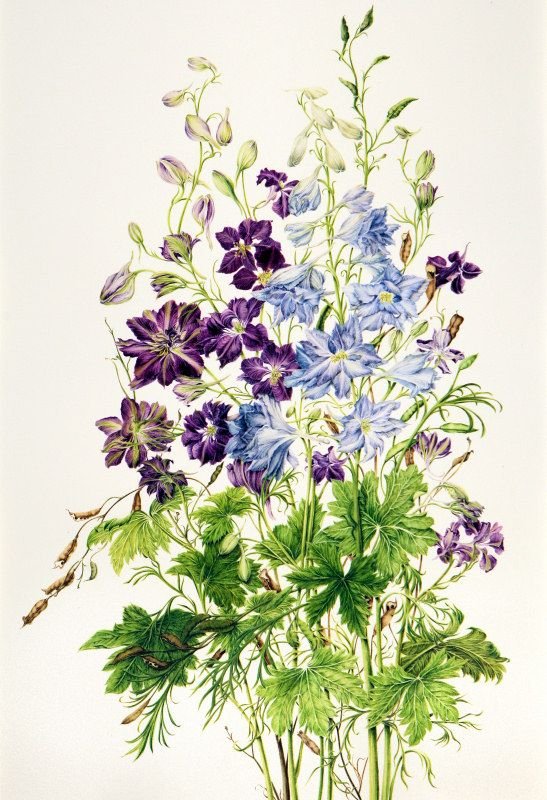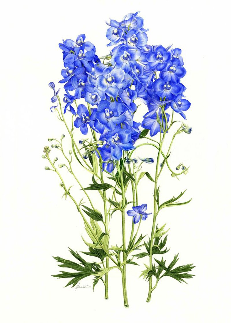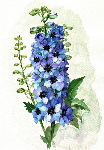 ![Акварельный дельфиниум]()