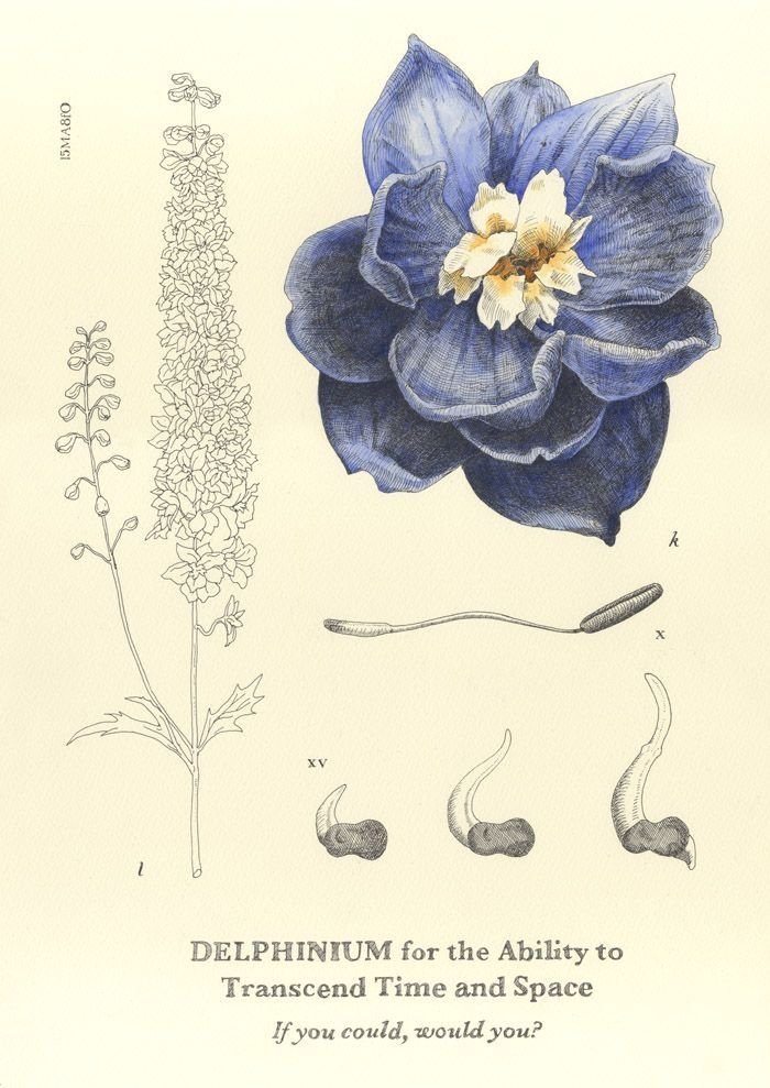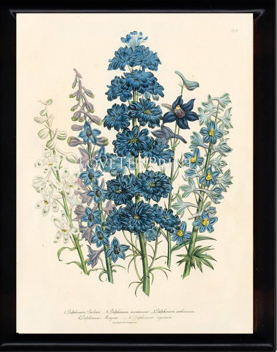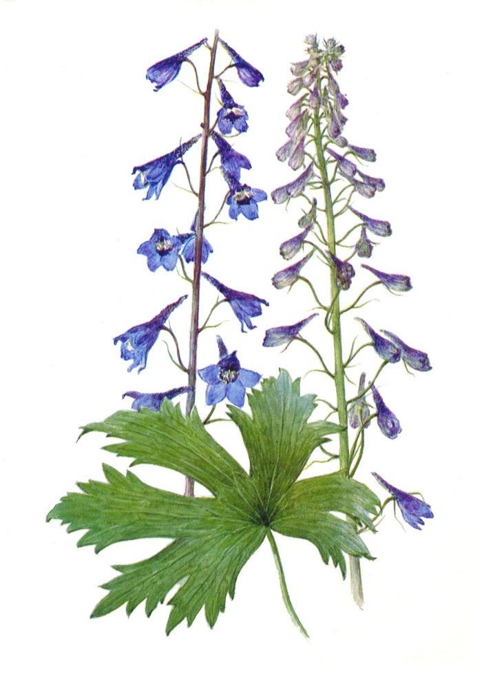 ![Дельфиниум Ботаническая иллюстрация]()