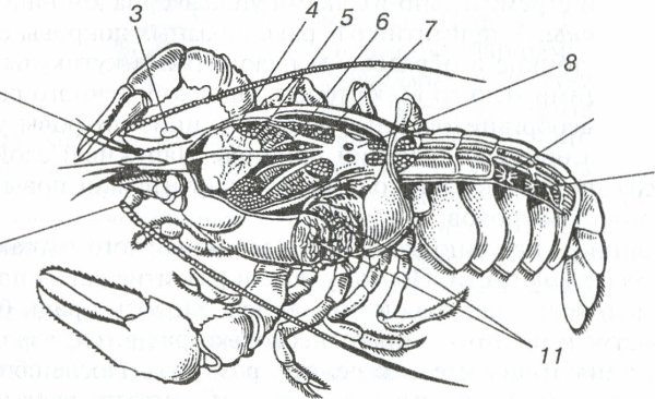 ![Зарисовать внутреннее и внешнее строение речного рака.]()
