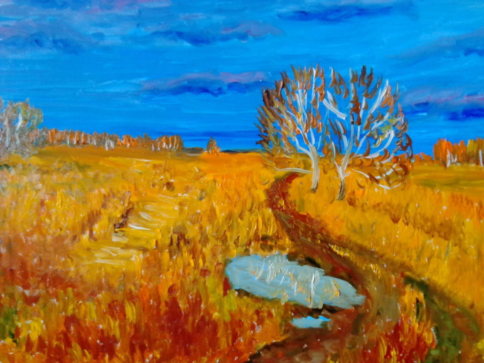 Осеннее поле гуашью
