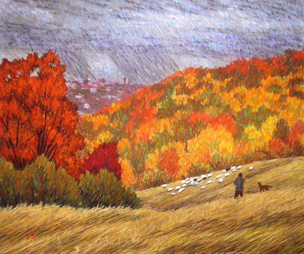Поле осенью акварелью