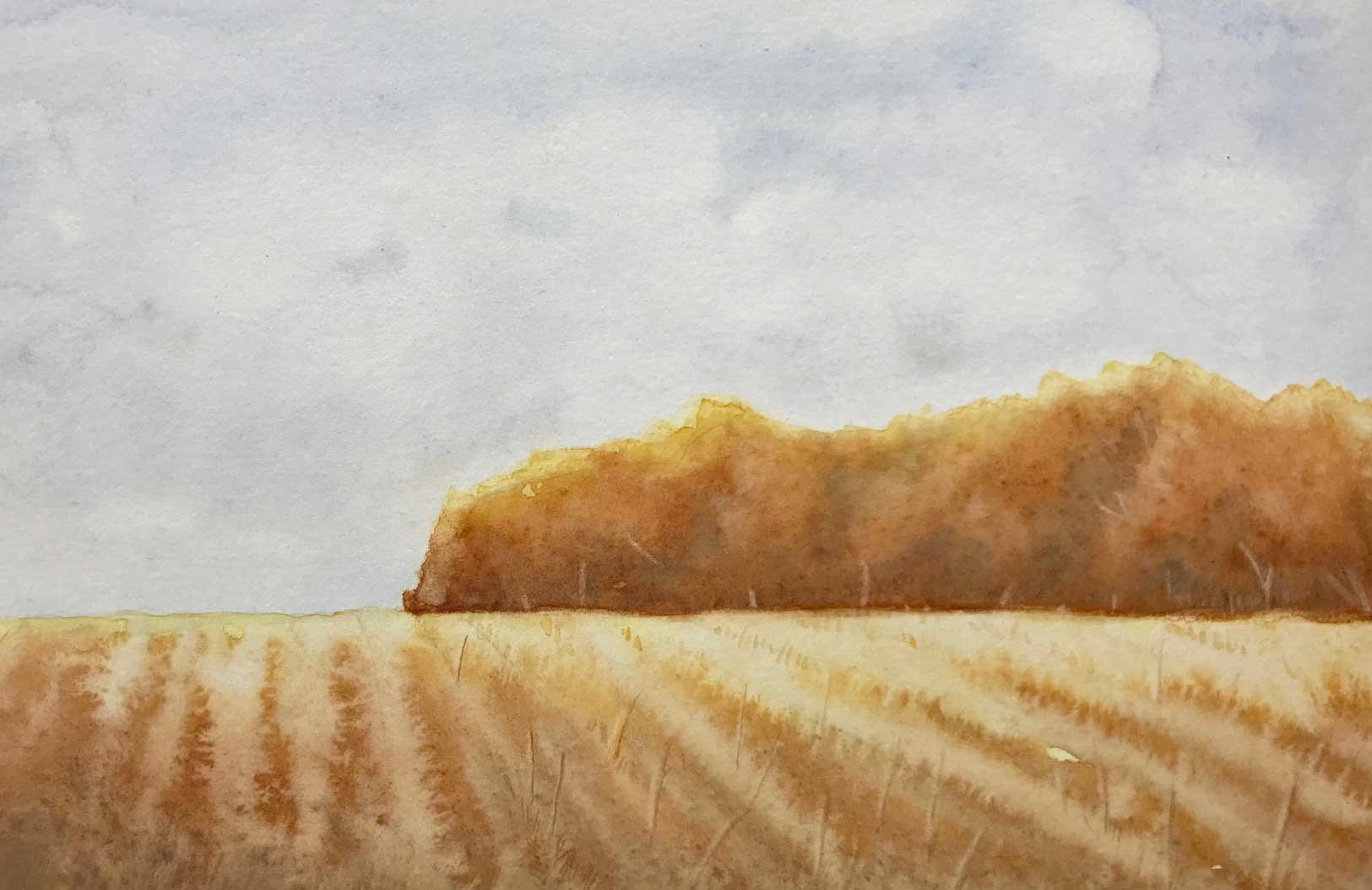 Пшеничное поле акварелью