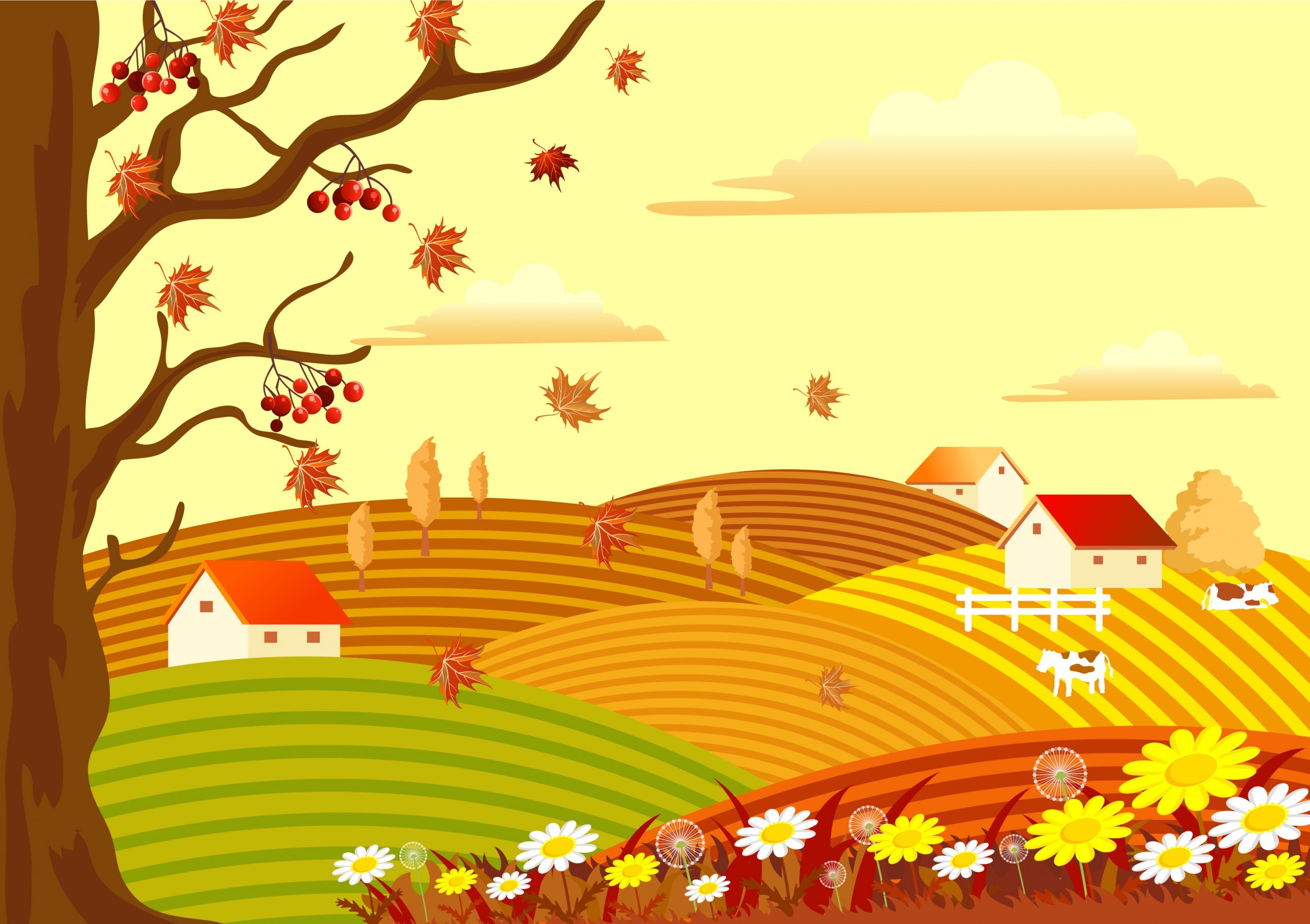 Осень пейзаж мультяшный