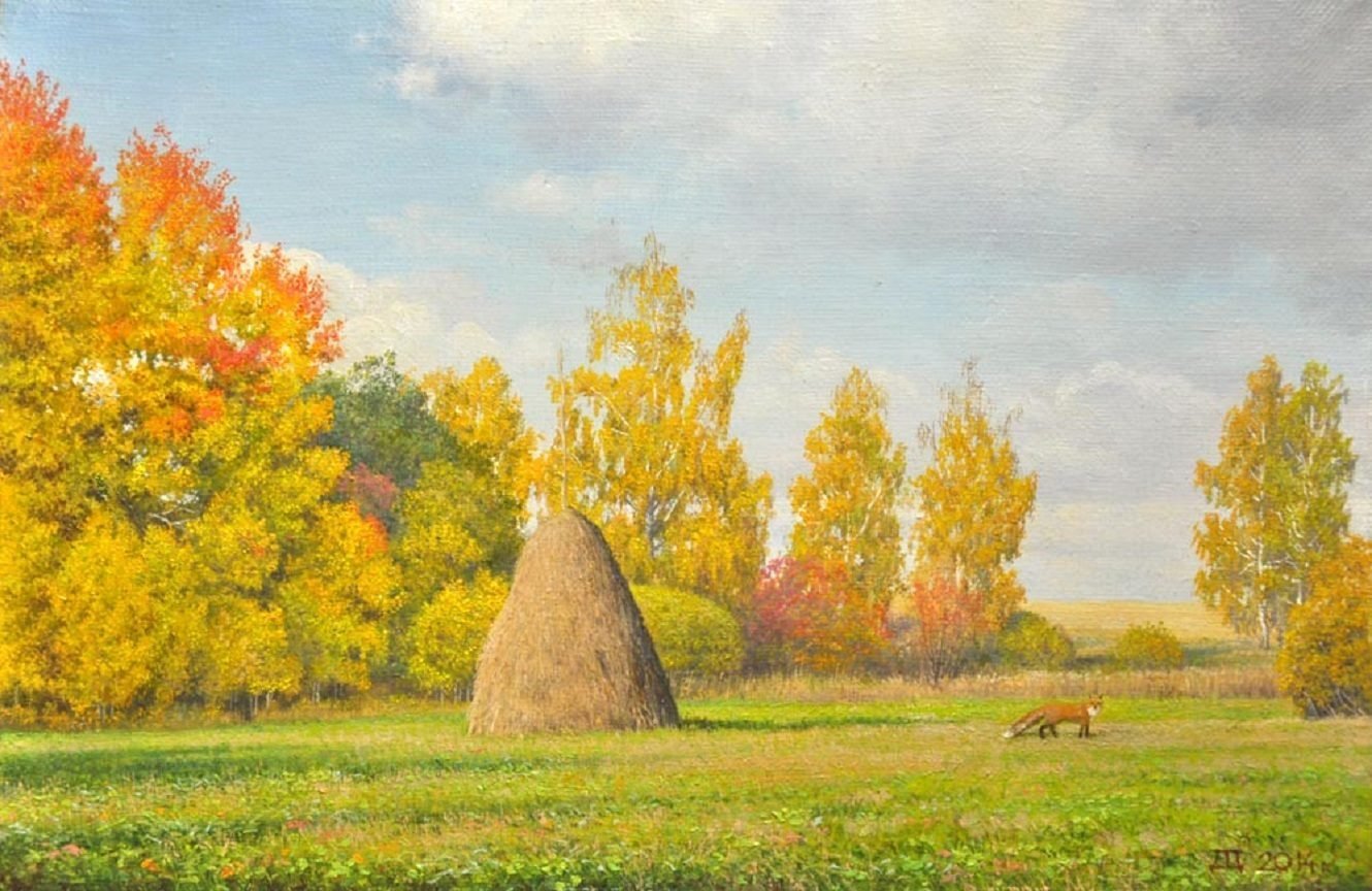 Поле осенью картина