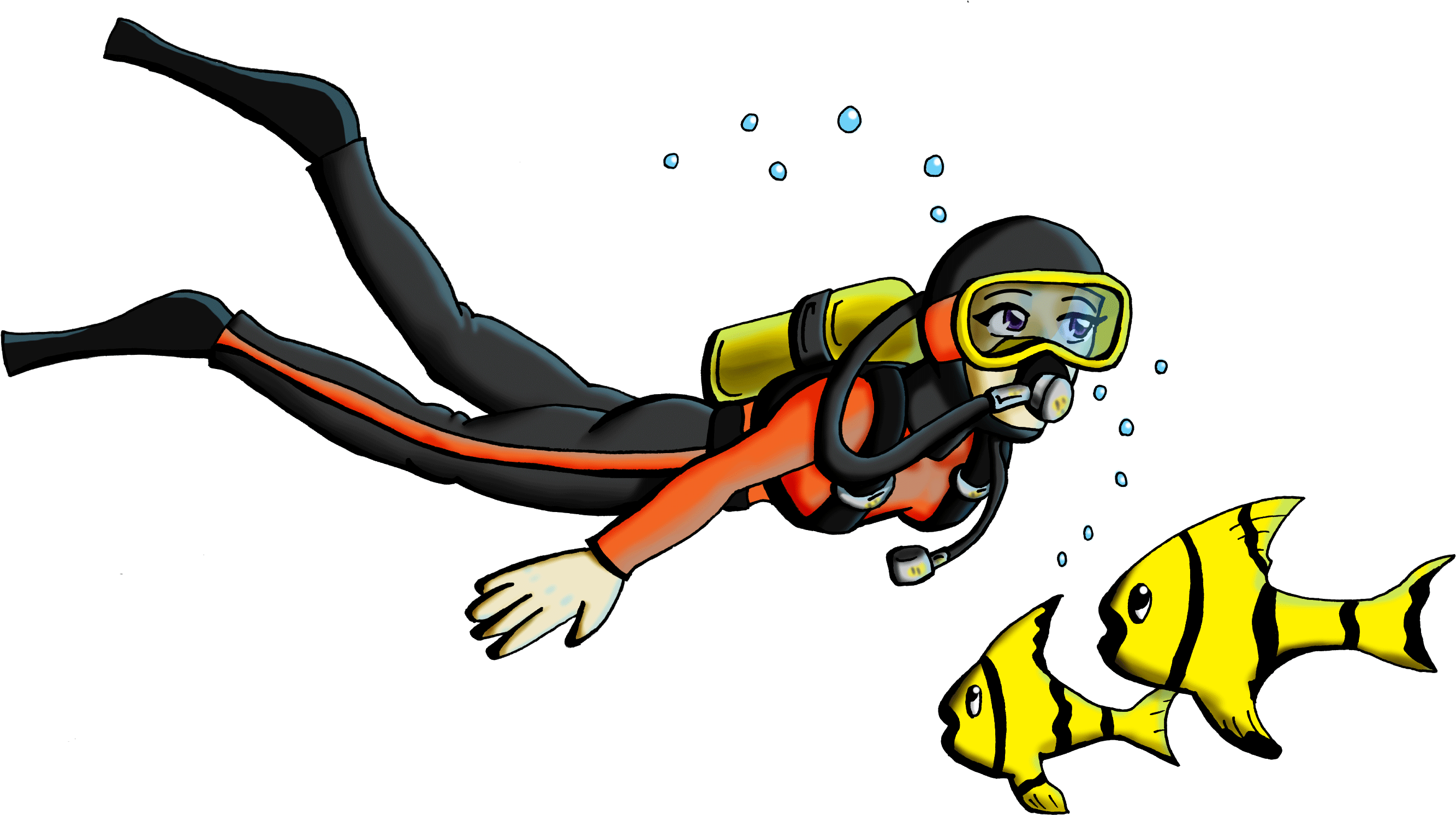 ![Аквалангист нарисованный]()