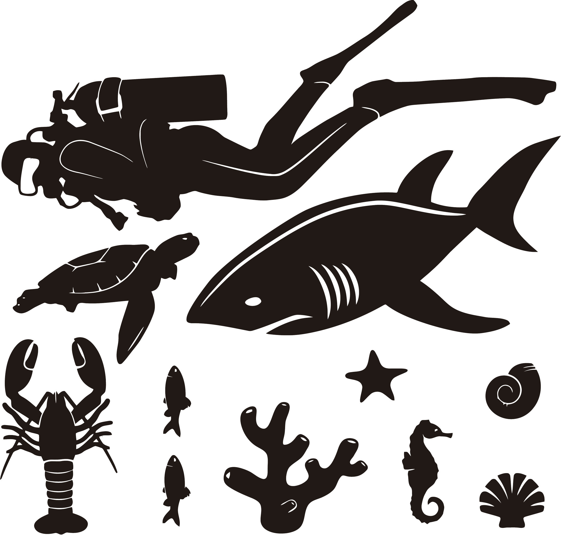 Силуэты морских обитателей