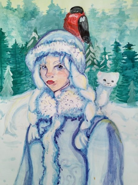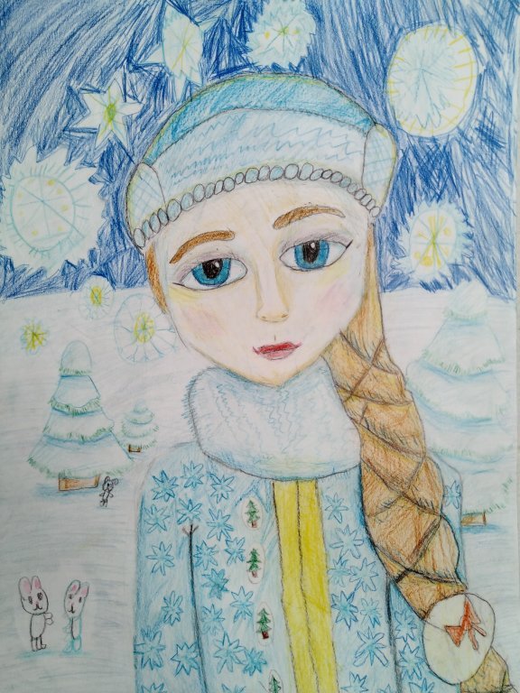 Портрет снегурочки - это изумительный рисунок, который передает всю нежность и красоту этого зимнего персонажа. На фоне белоснежного пейзажа искрится волшебство, а миловидная снегурочка привлекает взгляд своей изящной фигурой и ярким нарядом. Ее волосы уложены в косичку, украшенную заморскими цветами, а легкое платье сияет благодаря покрытию его мелкими блестками. Рисунок словно оживает перед глазами и приносит радость и восторг, напоминая о волшебстве зимнего времени и предстоящих праздниках. Портрет снегурочки - великолепное произведение искусства, которое позволяет окунуться в атмосферу новогодней сказки и насладиться ее красотой.